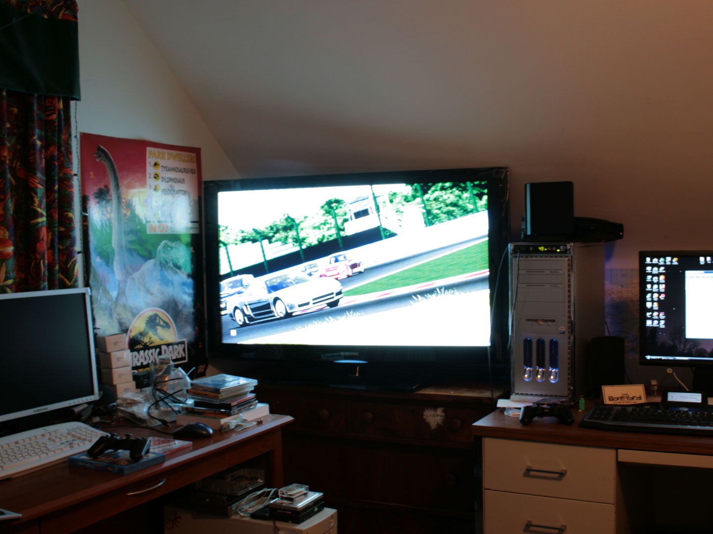 Now me being the type of person who will hook his computer to the TV (see previous post about Media Center), having things super sharp is very important. Also being a gamer, this sharpness is great to have with my PS3 as it makes even the finest detail HUD perfectly readable on screen. If you’re a gamer then LCD is really the way to go as games often have plenty of fine detail elements where you need the sharpness to really see it. Of course all this sharpness does come with some minor drawbacks. Because the image is so sharp, you can see every single flaw in the video if you take a good look. If you’ve watch broadcast HD stations, particularly any kind of sporting event, and you’ve looked close enough you have probably noticed digital artifacts caused by the relatively low bit rates of broadcast HD television. If you haven’t, then go watch a you tube video and notice the bad image quality there. It’s the same thing. The LCD, because it’s so sharp, does not blur these away like a projection or plasma does. Because of this, low bit rate video and standard def will actually look better on a projection or plasma. Now pop in a Blu-Ray or turn on INHD… those Bikini Destinations girls never looked so good!